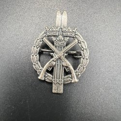 Vintage Sweden ski pin NS badge, crossed pistol 3 crown pin