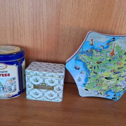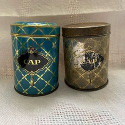 3 Tin cans Kungliga kolor, Tavener's Old English, candy jar cookie jar France