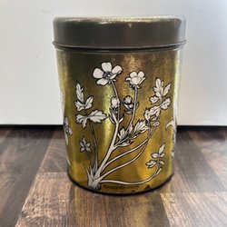 Retro tin with a motif of marsh marigold – gold tone, 1970s