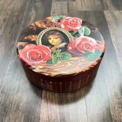 Vintage tin England – rose motif & child portrait, romantic style