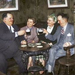 LAUREL & HARDY ON HOLIDAY IN IRELAND ENJOYING A BEER *HELAN o HALVAN COLOR PHOTO