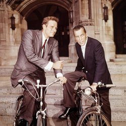 * ED SULLIVAN & CHARLTON HESTON BICYCLE AMERICAN TELEVISION PERSONALITY FOTO