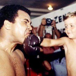 MUHAMMAD ALI RECEIVING PUNCH FROM LITTLE BOY PHOTOGRAPH FOTO