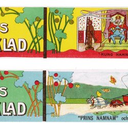 Chocolate labels. Kärnans Sagochoklad. Kung Namnam, Prins Namnam and Lill-Sessan