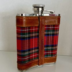 Flask in stainless steel with leather and fabric