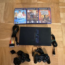 Playstation 2 med spel och handkontroll