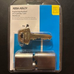 ASSA, copy-protected d12 cylinder 1201 Mattmässing, 5 keys