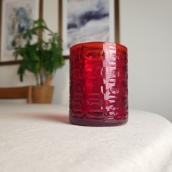 Retro Tealight Holder Red Glass Art Glass Design Christer Sjögren Lindshammar