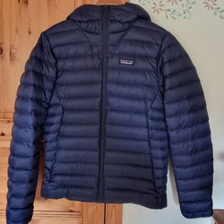 Patagonia Down Sweater Hoody, blue down jacket, size XS, new condition