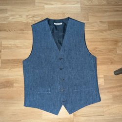 Blue linen suit vest