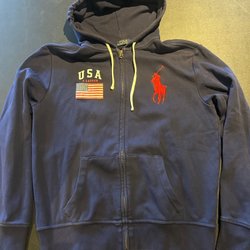 Ralph Lauren blue hoodie, cost 3000kr