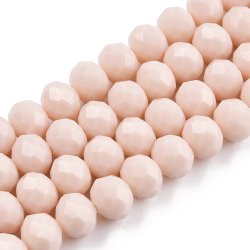 Faceted glass bead roundel - 10x8mm - light apricot - string - about 66pcs