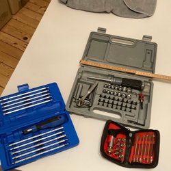 Tool Toolset x3 ratchet sockets chisels zoom and see what you get.