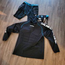 Salming blue/black/white floorball jersey, size L. NWT