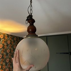 Pendant lamp in metal and frosted glass