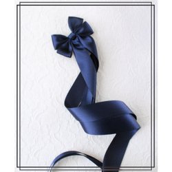Doprosett MARINBLÅ dubbel (stor) dubbla band - dopklänning dop rosett dopband