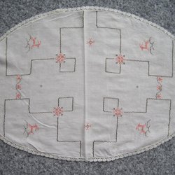 Vintage Broderad Oval Duk
