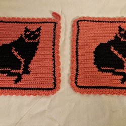 Crocheted Pot Holders with Cat Motif