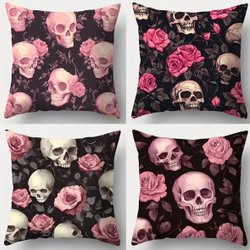 Pillowcases with skulls and roses 4 pcs. 45x45 cm