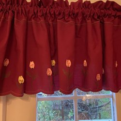 Romantic curtain valance with embroidered tulips. 3.1 m long. 45 cm high.