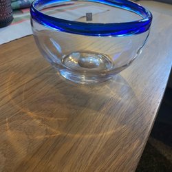 Bergdala glass bowl with blue edge