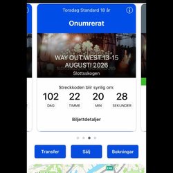 Tänk på att kontrollera datum och att biljetten du köper inte är personlig. I Sverige finns det inga lagliga hinder mot att varje sig köpa, sälja eller byta t.ex. evenemangsbiljetter på andrahandsmarknaden. Detsamma gäller inte i alla länder, ta reda på vad som gäller innan du köper.
