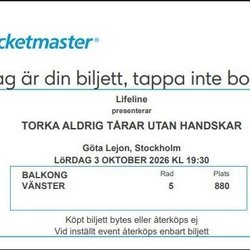 Ska ditt favoritband spela i Sverige? Hann du inte beställa biljett innan de tog slut? Här har du en andra chans. Ungefär hälften av Sveriges befolkning går varje år på en eller fler konserter och spelningar. Självklart finns det dem som går på många fler. Sommarens festivaler drar väldigt många unga och ibland kan det vara svårt att hinna knipa en biljett i tid. Som tur är kan man kolla runt här och med lite tur kan man göra sig ett riktigt fynd! I den här kategorin finns här även presentkort och biljetter till andra typer av events som teater, sportevenemang och mycket mer.