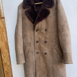 Vintage Shearling Fårull Mockarock Suede Leather Skin Coat Sheep Wool Heavy