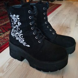 Black boots with embroidery goth kawaii Wicca platform