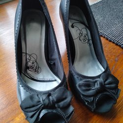 Black heeled shoes with bow pumps goth Lolita rocksbilly