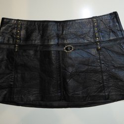 Short black leather skirt, size M, very good condition.