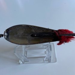 Antique Leidesdorff slantdrag with red tail and forged hook. Drag bait.