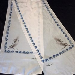 Scarf 100 % Silk Blue White Width 32 cm Length 130 cm