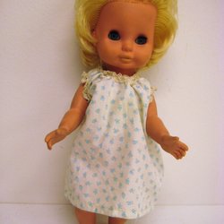 Doll with white overalls, retro 70s.