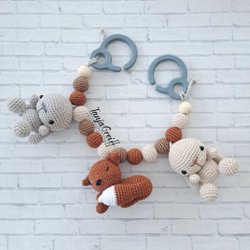 Pram mobile with crocheted toys