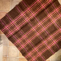 Brown, pink, orange tablecloth