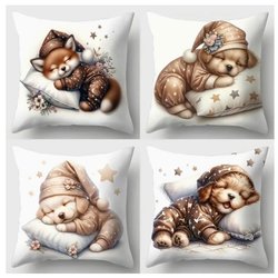 4 decorative pillows with animal motifs