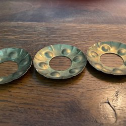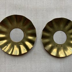 2 small candle cuffs in pleated brass, marked: SWEDEN. Candlestick Christmas tree candle.