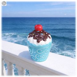 Cupcake porcelain ash dessert bowl with lid blue squiggly bottom chocolate top