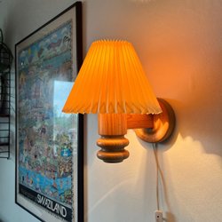 Wooden wall lamp with pleated shade