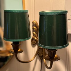Brass wall lamp with green lampshades from the early 1900s