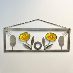 Tavla Relief Tenn Glas Retro Blomma Väggtavla 27x15 cm Retro Vintage (b3)