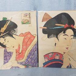 PAIR OF OLD ASIAN CLOTHS - PRINTED GLASSED PRINTS