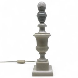 Alabaster table lamp. White fabric shade. 36 cm high. New from an older shop.