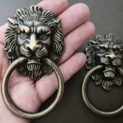 2-pack HANDTAG av lejon! STORA! 5×9 cm, brons, knopp, beslag, möbelhandtag, lion