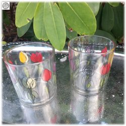Beautiful pair of vintage glasses with tulip motif. Good condition.