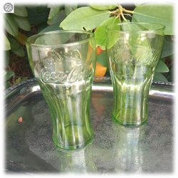 Pair beautiful fine arched Coca-Cola glasses green Limited Edition 2008 as new