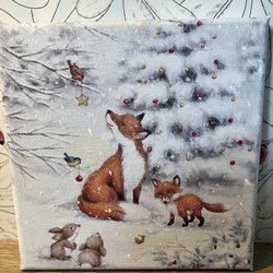 Canvas Tavla Rävfamilj i Jultid 15x15 cm