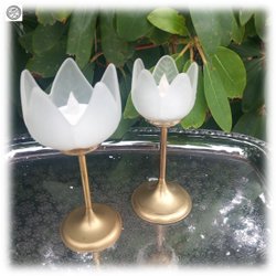 Beautiful pair of candle holders design tulips white brass foot Fine condition