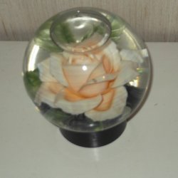 Rose hide glass cup 70s Rose in Water Unique Orange Flower Vintage Glass Globe Fine